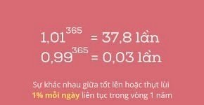 Nếu mỗi ngày bạn tăng thêm 1% thì sau một năm bạn tăng trưởng 37,8 lần. Ngược lại, mỗi ngày bạn giảm đi 1% thì sau một năm bạn không còn gì để nói.
