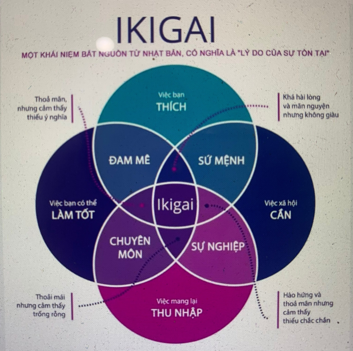Theo người Nhật, Ikigai – lý do của sự tồn tại - phải là công việc mà xã hội có nhu cầu, bản thân thích làm và có thể làm giỏi đồng thời nó phải mang lại thu nhập.